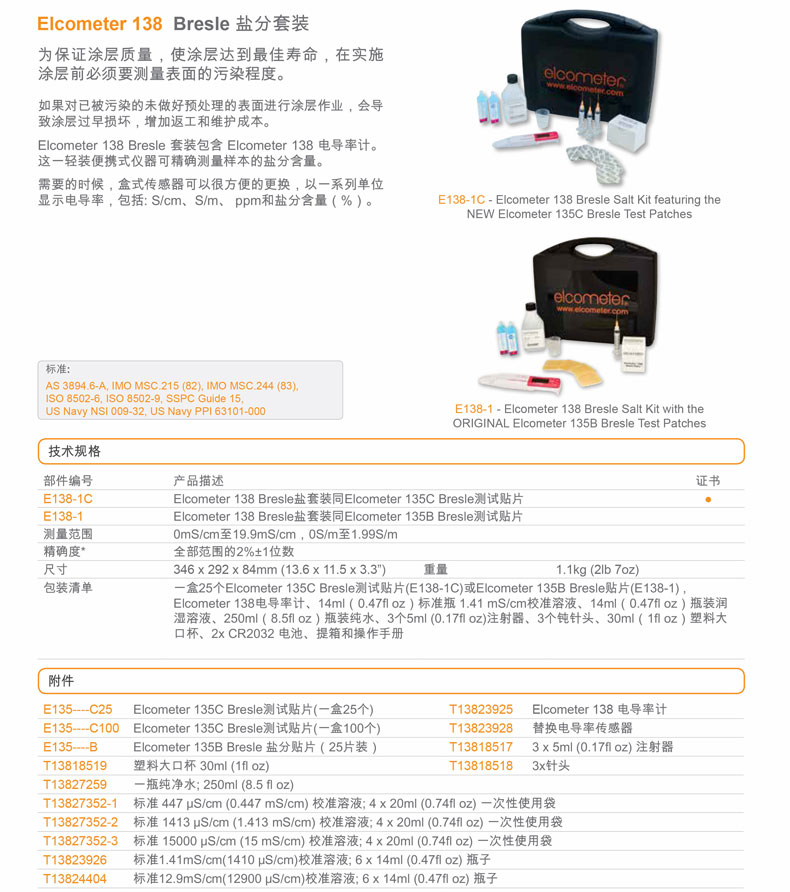 名称 Elcometer138 Bresle盐分套装