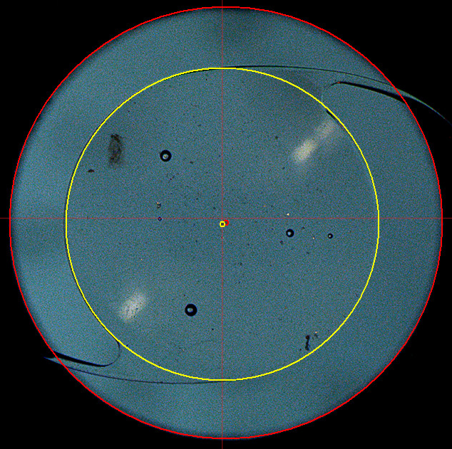 人工晶状体光学偏心测试仪的测量原理:将人工晶状体置于一个处方直径(10或11mm)的夹具内后,测量其光学主体部分的几何中心和夹具孔座中心之间的偏移距离。