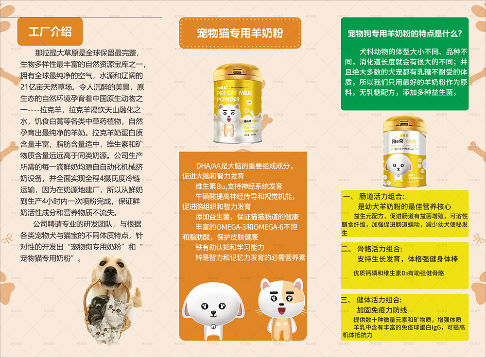 新疆麦琪尔宠物乳业有限公司专业生产、研发、销售、设计宠物奶粉,定制高端宠物奶粉,自有牧场5.1万亩,奶源地建厂,保证了鲜奶到场运输不变质,保证了奶源的新鲜。厂家面向全国招宠物奶粉代理商、经销商,承接宠物奶粉OEM代加工服务,从商标注册到成品出货一条龙服务,资质齐全。