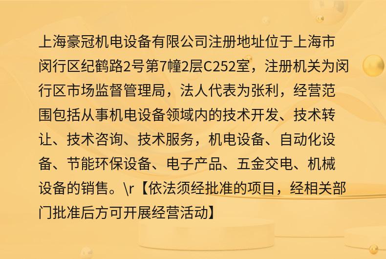 商铺名称:上海豪冠机电设备有限公司