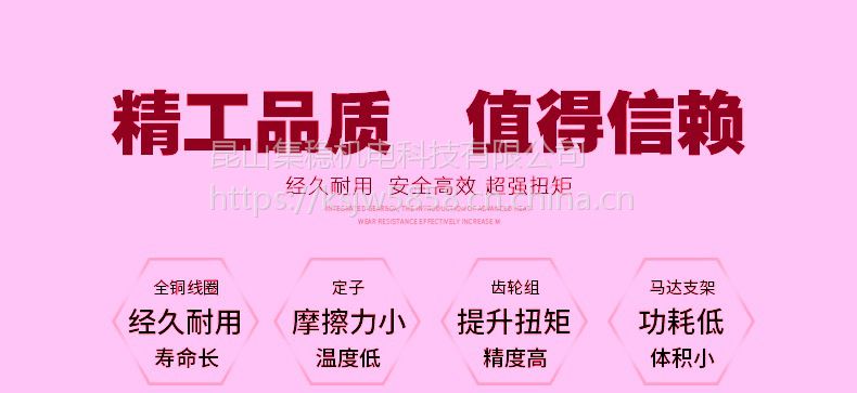 经营范围主要生产销售小功率6W-3700W飞腾减速电机,减速比1:3-1:1800减速电机。电机品类:调速刹车减速电机,力矩减速电机,直流减速电机,蜗轮蜗杆减速电机,行星减速电机,无刷直流电机,电机控制调速器,变频器九大系列近千个品种的电机,产品结构紧凑,启动转矩大,体积小,重量轻,噪声低,震动小等特点,是理想的低速大扭矩动力源。昆山集稳机电科技有限公司的诚信、实力和产品质量获得客户认可。