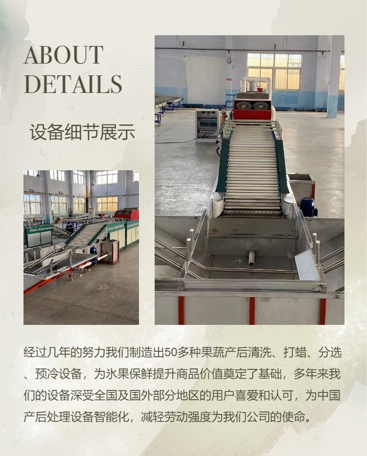 2、通过对果实的清洗减少病虫害和传播;3打蜡后果品果面洁净,光亮度高,食用蜡对果品形成保护膜,有效抑制水果呼吸,起到保鲜作用;