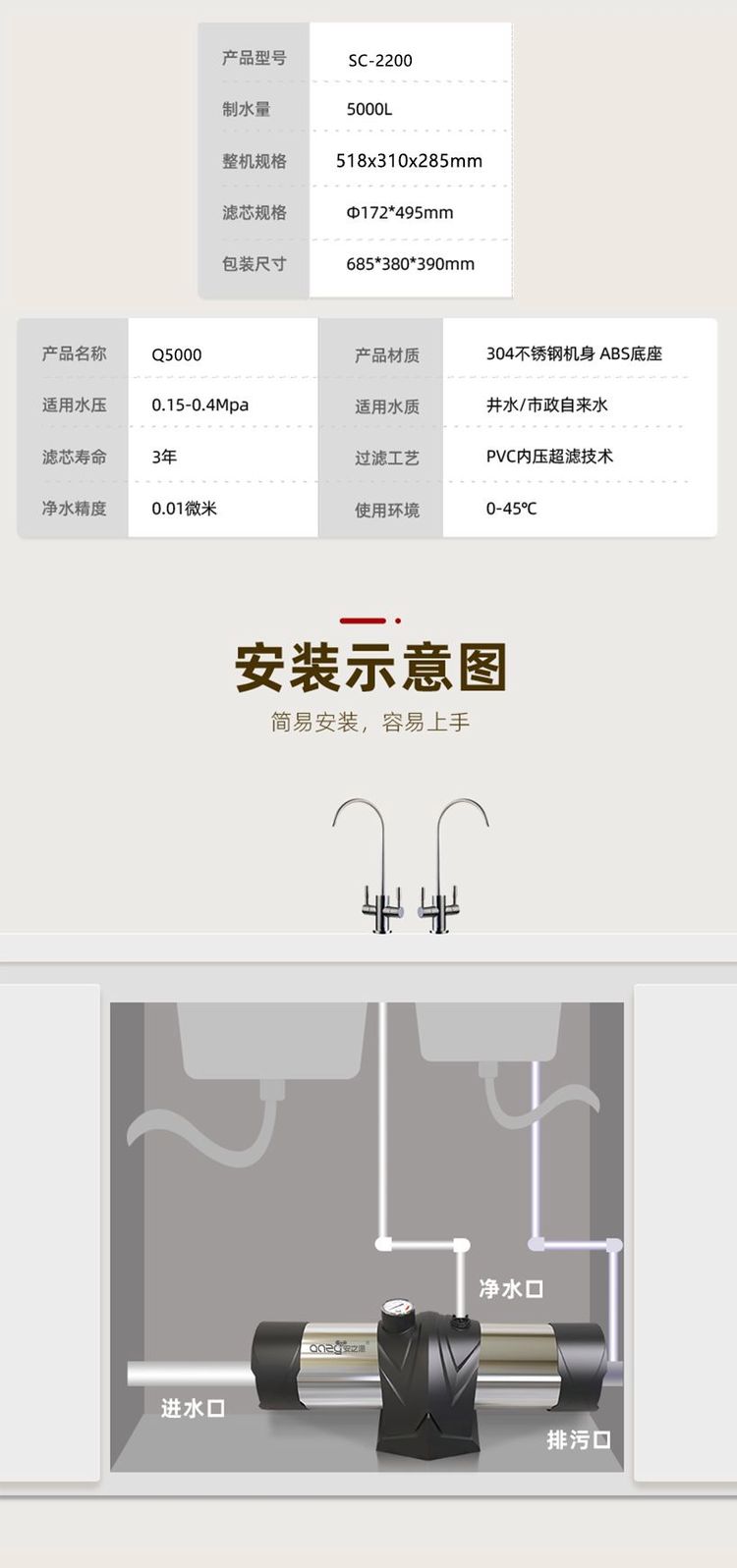 安之源(anzy)0.01微米高精过滤保留有益物质大流量出水Q5000