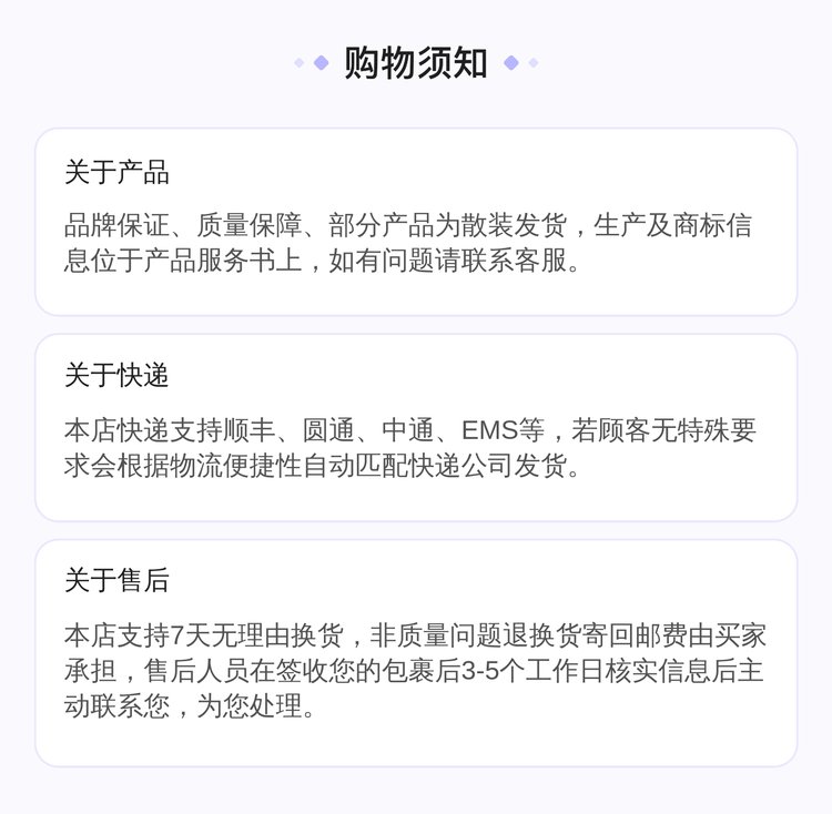 规格 | 最小包装 | 3个/包 | |