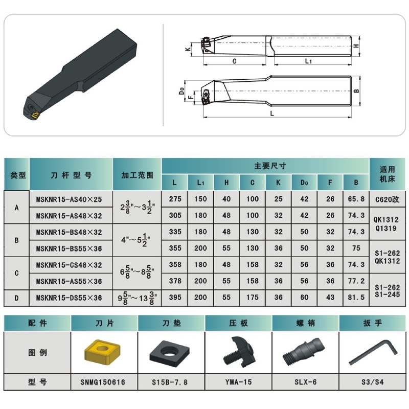 石油管螺纹疏刀刀具镗孔刀杆MSKNR15-BS55×36