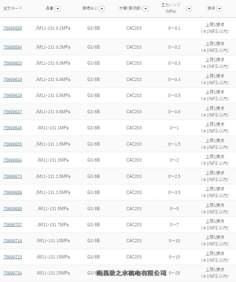 优势供应日本NKS长野计器圧力计JM11-131 0.1MPa