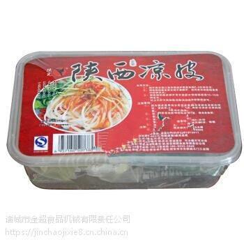 全自动连续封碗包装机是在普通真空包装机的基础上发展起来的新一代真空包装设备。它能将拉伸片膜通过该设备加工成形状后用复合片膜附在上面,抽真空后封口,最后分割成独立的产品的一种设备。适用于对各种食品,肉制品、海产品、果蔬、酱菜、冷却肉、五金元件等进行真空、封口包装。先将产品放在盒/碗里,再将盒/碗放在设备的放料区,盒/碗随着链条的向前运行进入到封口模具里,模具上升,在封口模具里将上膜附在盒/碗上,先抽真空(可根据用户产品包装要求,在抽真空的基础上,充氮气或混合气体进行包装)封口(上膜和盒/碗封在一起)冲切,最后排气,降模,包装好的产品随着链条继续向前运行,从出料口出料。设备还附加了光电跟踪对齐彩膜系统,为用户节约成本,提高工作效率,提高包装档次,还可以根据用户产品包装要求,配备自动打码系统。