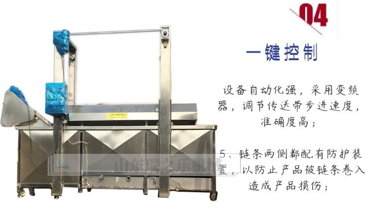 3、设备输送带电机可实现调节变速功能,被清洗的肉类、水产品经过网链输送,自动送料,鲅鱼带鱼黄花鱼化冻流水线自动出料,根据生产需要调节输送带输送速度;