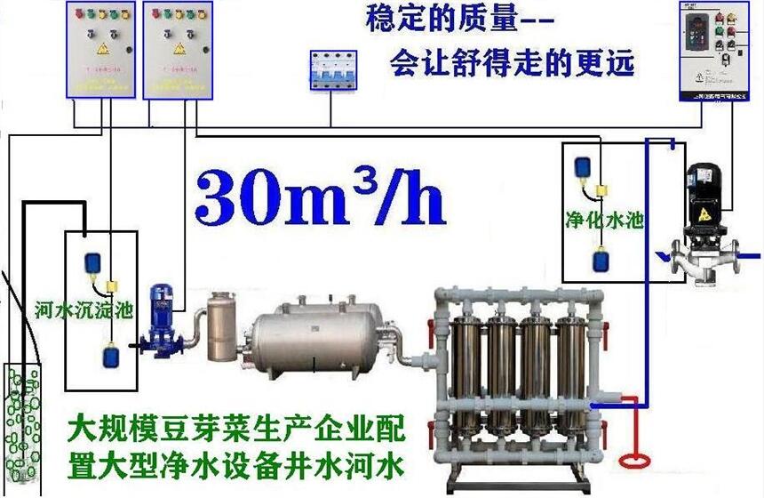 全国豆芽菜制作大型生产加工企业基本上80%会选择使用地下水、15%会选择使用河水、因为费用低水源足、地下水河水虽然水源足但是要重视的是水里含有大量寄身虫、细菌群、大肠杆菌群、钙镁离子、有害的重金属比较严重,在不处理的情况下长期使用比如寄身虫、细菌群、大肠杆菌群、有害的重金属都会直接影响自家人和客人的身体健康,比如钙镁离子直接影响水加热器的结垢、