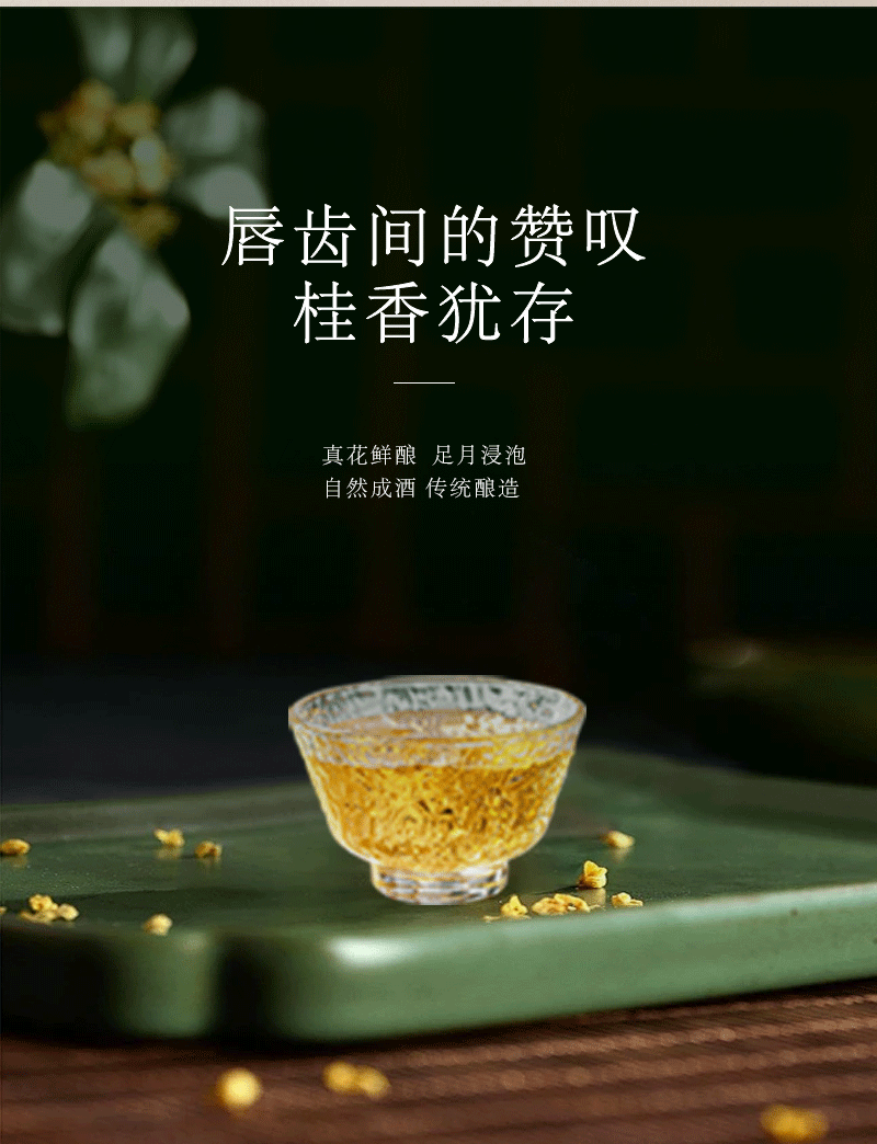 传统发酵法:将桂花与糖混合发酵成桂花露,再与基酒混合陈酿。