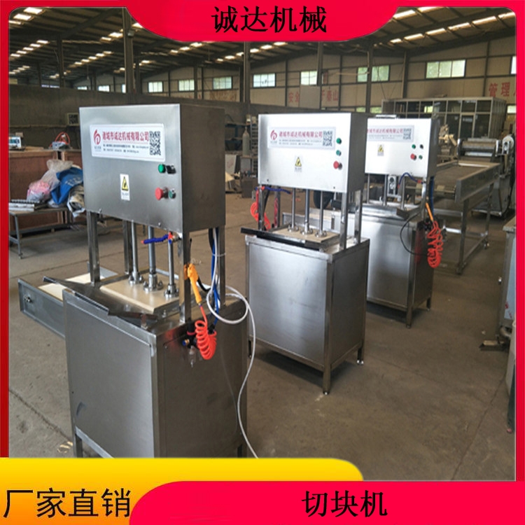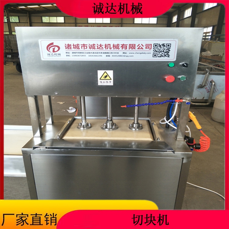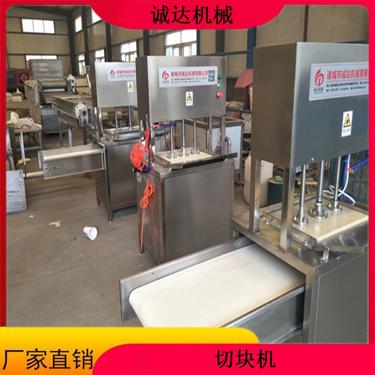 千页豆腐机 千页豆腐切块机器 供应千页豆腐切块机设备切割设备,诚达科技为用户提供多款。本机可对千页豆腐,鱼豆腐,QQ豆干及相关特性的物料进行专业切割,还可切割成丁,条,片,块,三角形,菱形等多样化。我公司切割设备的型号有:单机,传送带,推拉式,切割+提升,全自动型。