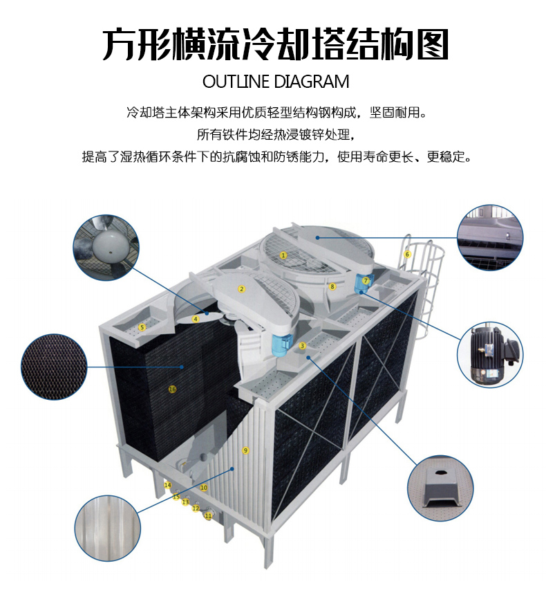 新品方形玻璃钢冷却水塔高温逆流冷却塔空调制冷设备配套凉水塔