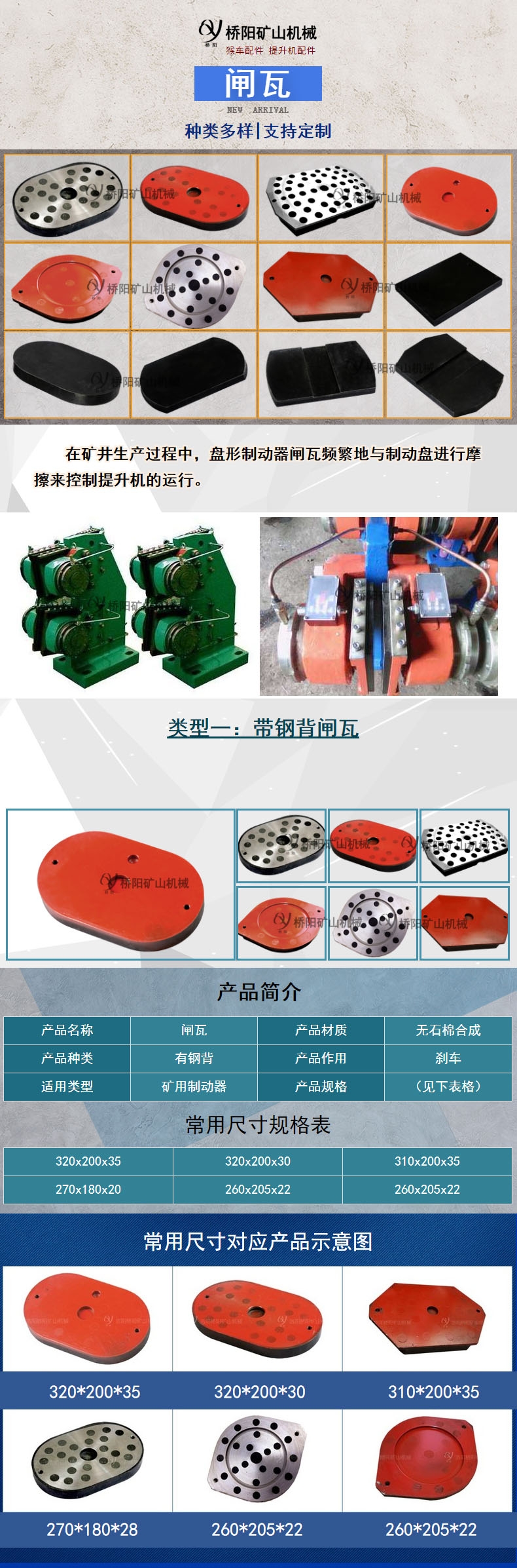 无石棉闸瓦,是一种采用树脂基并用其它增强纤维代替石棉的摩阻材料。闸瓦是矿井提升机制动器的零件之一,如果闸瓦的各种性能达不到设计要求,就会攸关设备能否正常运行。在矿井生产过程中,盘形制动器闸瓦频繁地与制动盘进行摩擦来控制提升机的运行。