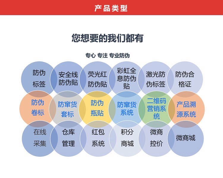 印刷产品范围 | PCV不干胶防伪标签 | ||