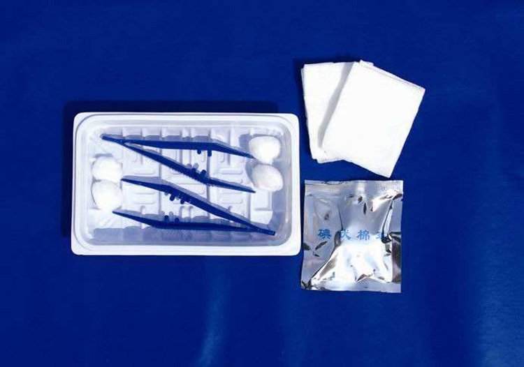 【结构与组成】本产品由基本配置和选配置组成。I型(缝合型)由基本配置:医用脱脂纱布块、医用棉球、医用镊、一次性医用包布、托盘和选用配置:剪刀、一次性使用孔巾、一次性使用医用橡胶检查手套、非吸收性外科缝线、医用缝合针、无菌塑柄手术刀、自粘式伤口护贴组成、一次性使用灭菌橡胶外科手套。II型(换药型)由基本配置:医用镊、医用脱脂纱布块、碘伏棉球、托盘和选用配置:一次性使用医用橡胶检查手套、一次性医用包布、医用棉球、一次性使用孔巾、一次性使用治疗巾、一次性使用中单、小碗、一次性使用灭菌橡胶外科手套组成。