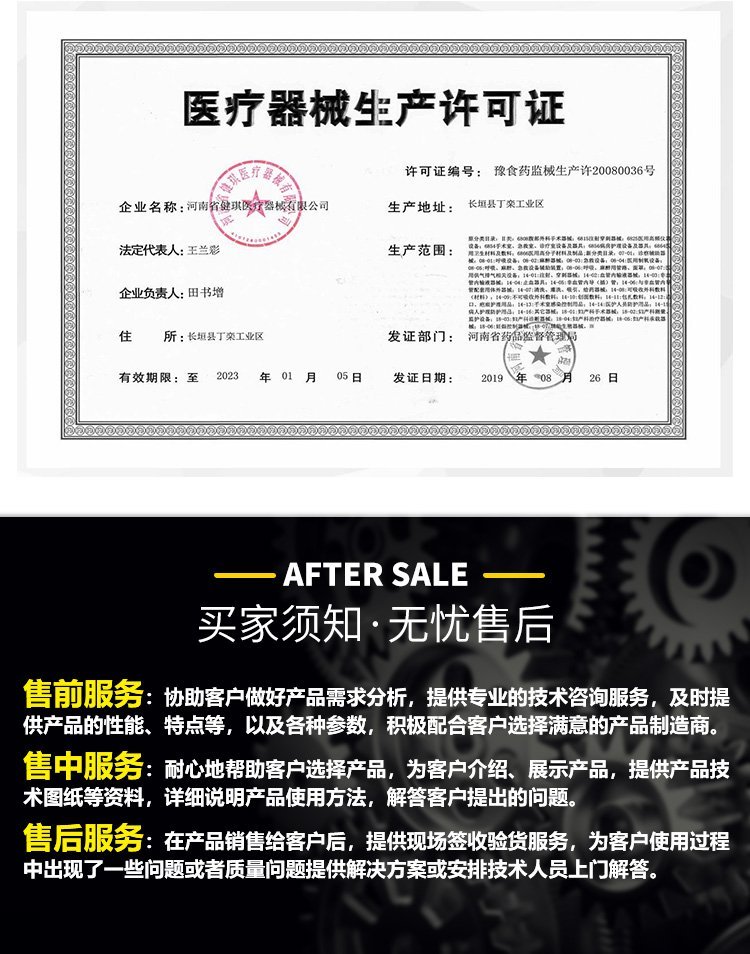 生产许可证 | 豫食药监械生产许20080036号 | ||
