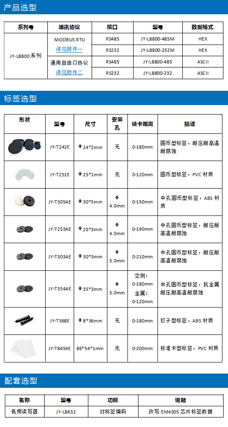 适用卡类 | RFID低频标签 | ||