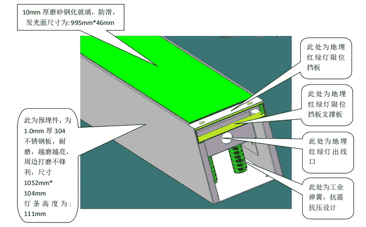 2.高强度抗压,抗震:采用 10mm 磨砂钢化玻璃,钢化玻璃表面磨砂处理,防滑设计。
