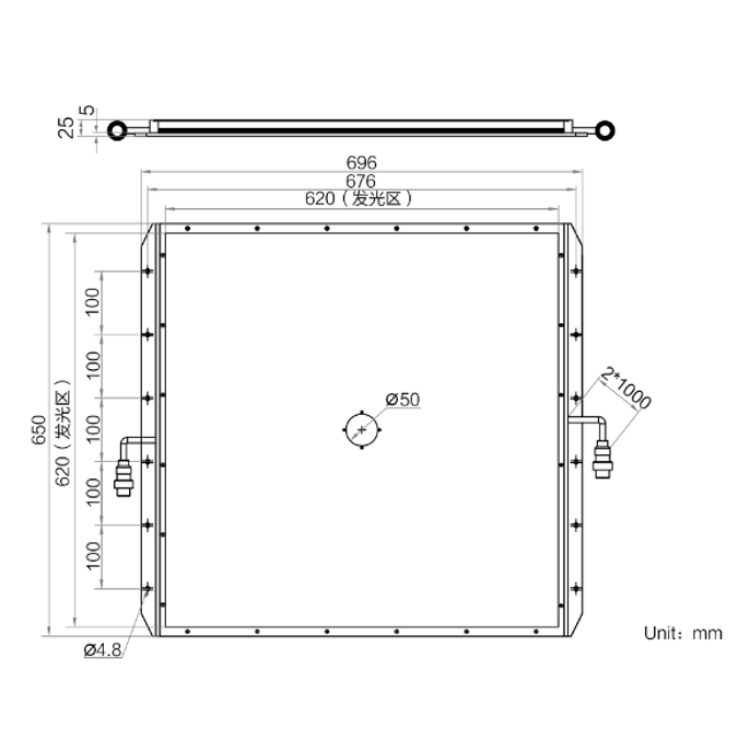 发光区尺寸   620mm×620mm