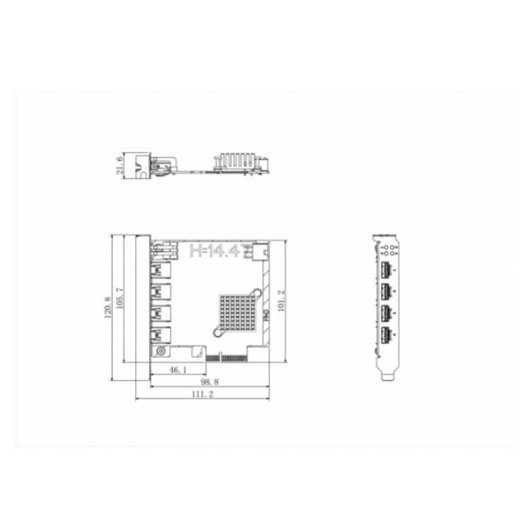 GU3-5U41R 杭州华睿科技传输速率可达5Gbps4路USB3.0接口工业相机用数据采集卡 结构尺寸图(mm):