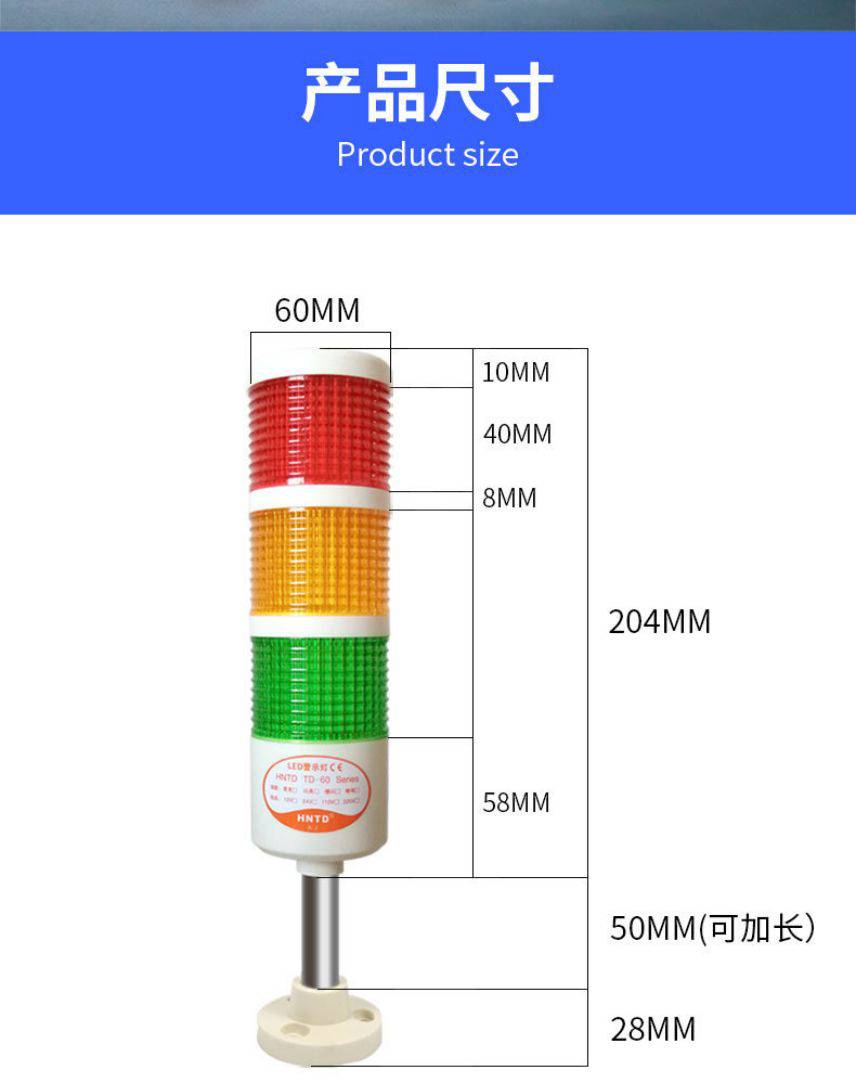 TD55杆式红黄绿三色灯自动化报警灯高分贝带蜂鸣器