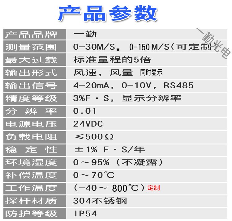 测量范围 | 风速 | ||