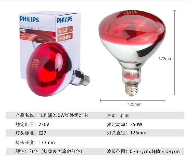 高校实验室用红外线加热灯 烘干灯 飞利浦红外灯灯泡 250W 配加灯架