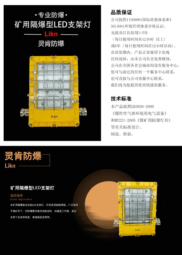 煤矿用防爆型LED照明支架灯DGC36/127L(A)大方形款井下隔爆工矿灯 品牌 | 灵肯防爆 | ||