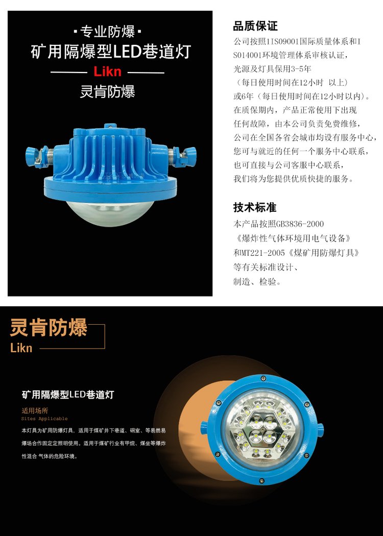 工厂出售 井下用防爆照明灯DGS36/127L(A) 矿用隔爆型LED巷道灯 品牌 | 灵肯防爆 | ||