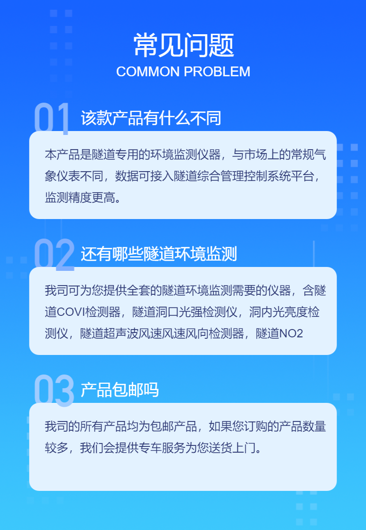 用途 | 监测隧道内一氧化碳与能见度数值 | ||