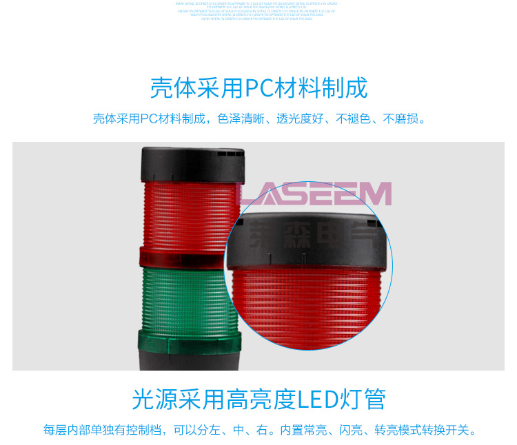 5、适于用恶劣环境下正常工作警示灯通常是用在机械设备等开发。一般情况下,用处可以提供多样的长度的产品的,有灯罩组合的构造,需要时一边方向的灯罩可以组合复合颜色。此外,还可以根据光源形式的不同,分为:1灯泡旋转灯;2LED闪光灯;3氙气灯管频闪灯,其中LED闪光形式的是灯泡旋转形式的升级版,使用寿命更长,更节能,更环保!