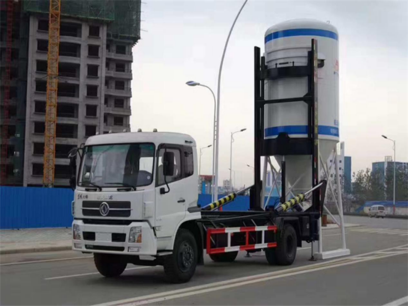 配置介绍:采用东风原厂DFL1160BX1V二类底盘,东风天锦平顶白玉色驾驶室,单卧铺,东风康明斯ISB180马力发动机, 东风6档变速箱,9.00R20钢丝胎,原厂空调。筒仓含料可背起10吨