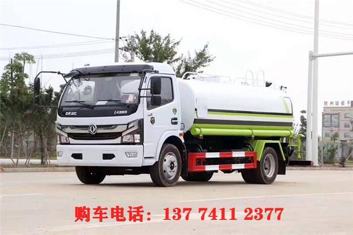 洒水车前冲(喷)后洒,带侧喷,罐体后带工作平台,平台上安装绿化洒水炮,洒水炮可旋转,可连续调成直冲状、大雨、小雨、毛毛雨,带安全护栏,配备全国质量评比名的杭州威龙大功率专用洒水泵,泵可自吸自排,安装过滤网,带消防接口,可通过消防栓进水,带自流阀,随车选装20米绿化卷盘,可喷洒农药,罐体金属漆。