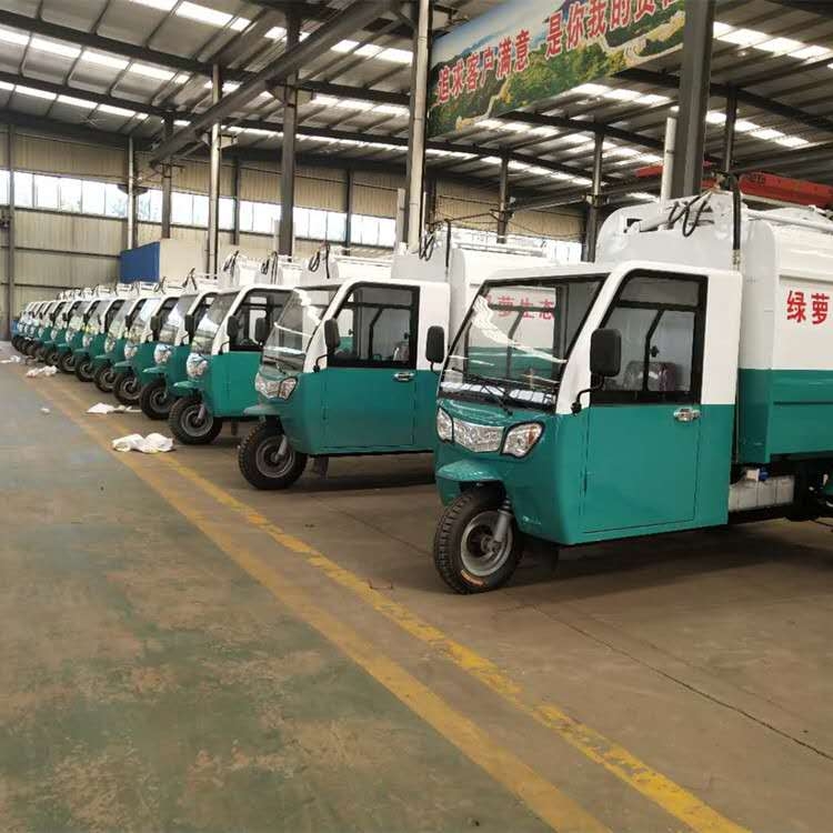 河南环卫垃圾车小型新能源电动三轮垃圾清运车图片 产品介绍 :电动三轮垃圾清运车独立液压单元,噪音低,效率高,故障率低保障整车有效运行,先进的倾倒架及翻斗结构适用120升、240升标准垃圾桶,实现垃圾到中转站无缝对接,达到洁净操作的目的。新颖的箱体结构,采用机器人无缝焊接,内外表面经过防腐处理,经久耐用;尾部采用防漏水设计和顶部的防风设计,避免了社区道路的二次污染,为环境建设增加亮点。
