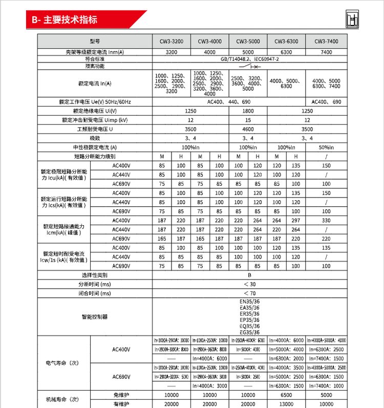 额定电流 | 2000A、2500A、2900A、3200A | ||