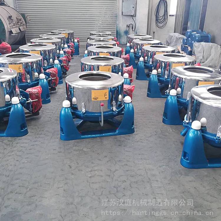 1、工业甩干机均为三足悬摆式结构,可有效减轻因转毂内载重不平衡而在运转时产生的地脚振动。