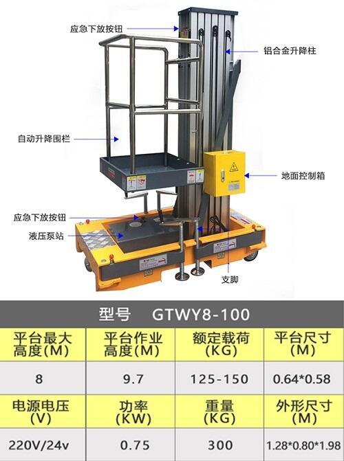 GTW8-100单柱升降机技术参数: