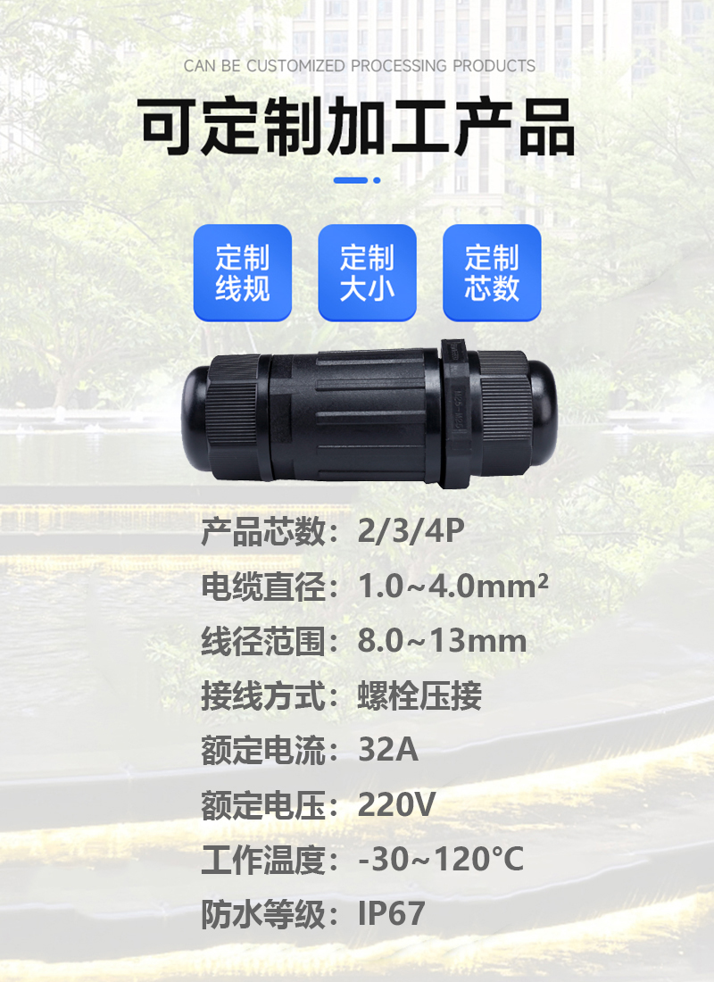 m25尼龙螺栓公母转换航空插头快速激光线对线功率直通防水连接器