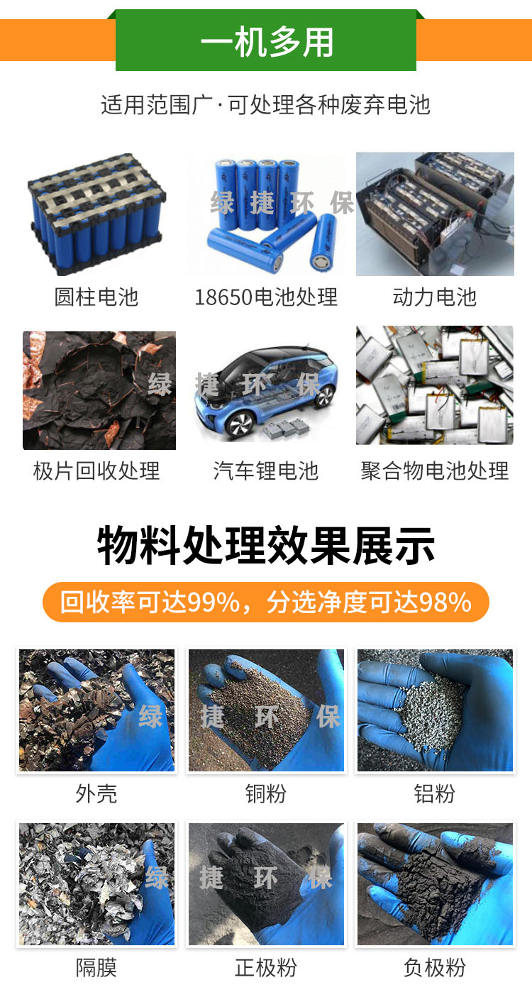 绿捷环保18650锂电池热解回收设备自动化拆解全新