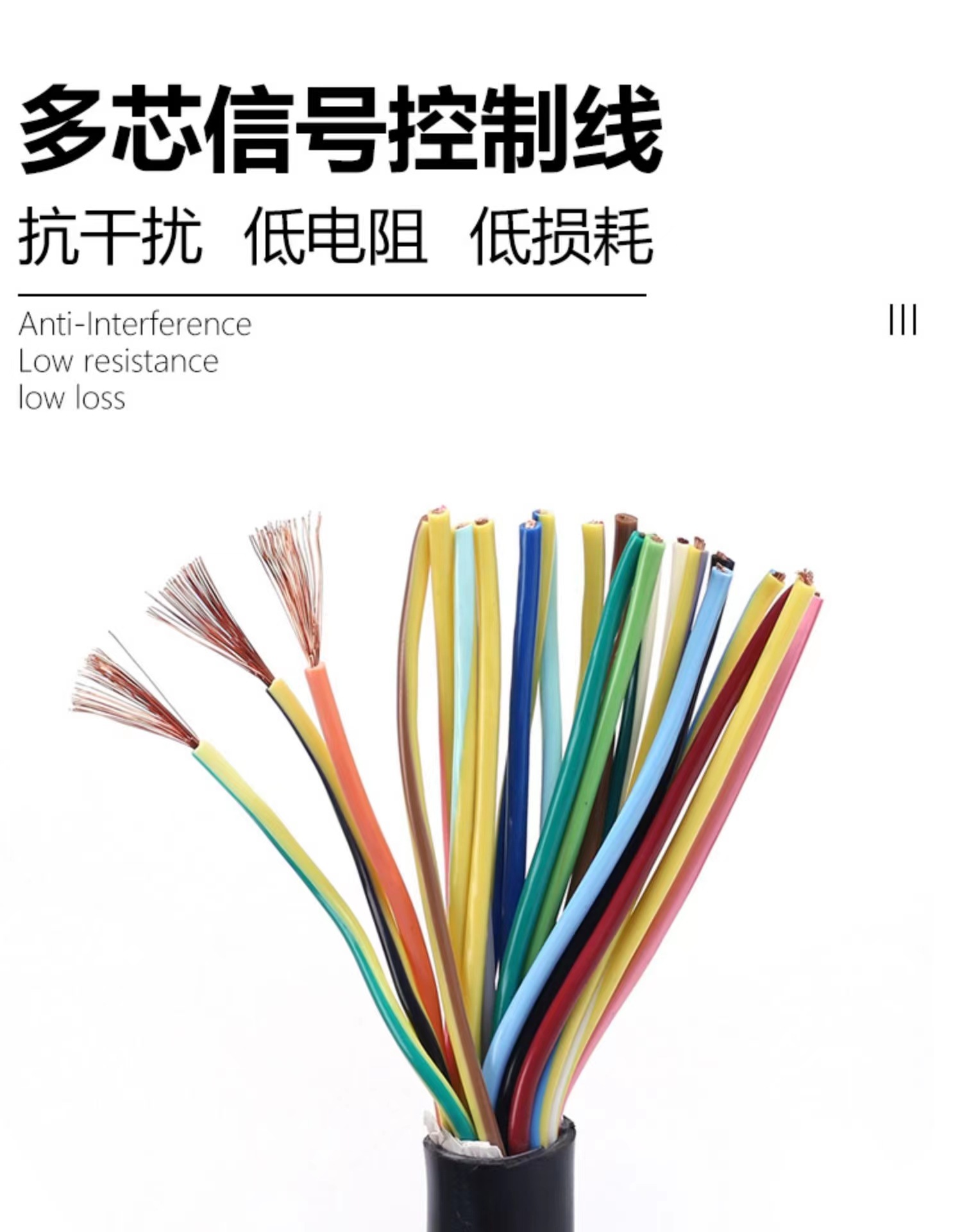 额定电压300V/500V,芯数从2芯到24芯之间按国标分色,两芯以上绞合RVV电缆成缆,外层绞合方向为右向,广泛应用于仪器、仪表、楼宇对讲、监视监控的控制安装。
