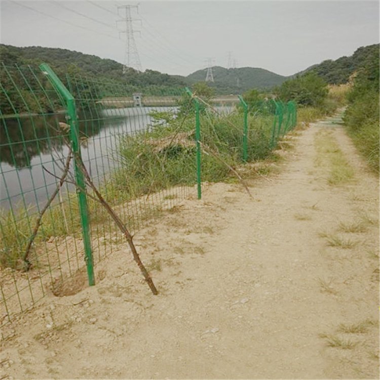 绿色覆塑铁丝网围栏选用低碳钢丝、铝镁合金丝,喷塑。生产过程:直丝,切割,折弯,焊接,检测,破坏性实验,美化(聚乙烯,聚氯乙烯,热浸),包装,仓储,同时根据用户要求定制生产。