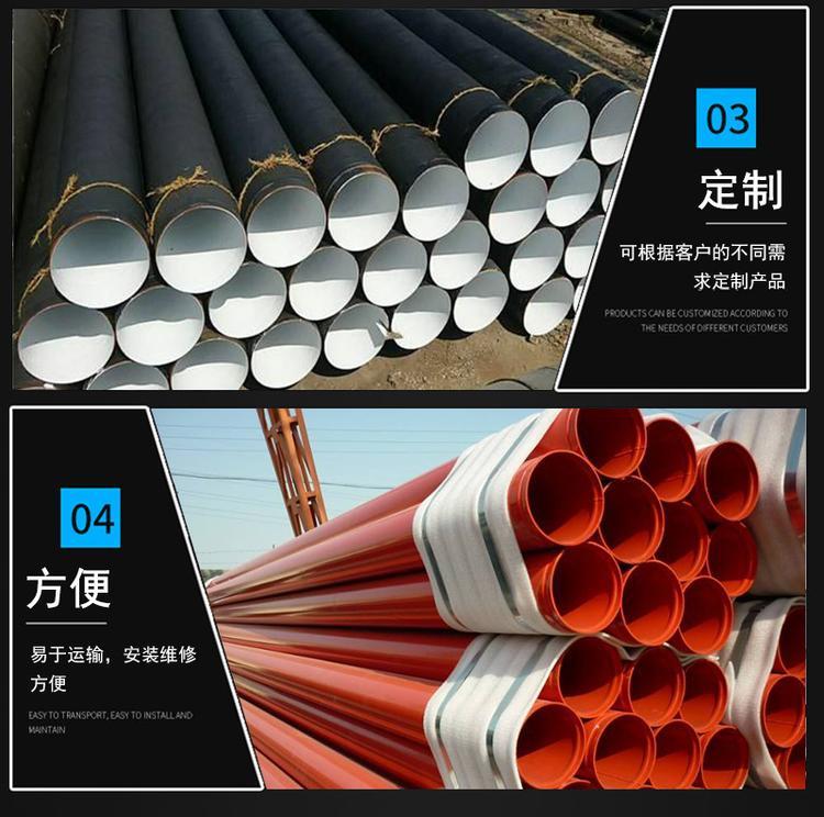 内外涂塑钢管产品优点:1.适应埋地和,并可以耐高温和极低的温度,2.抗能力强,如果涂塑钢管作为电缆套管,可以有效屏蔽外界的 国内大口径聚涂塑管已突破3200mm,规格在2200mm以上则用无溶剂环氧涂装