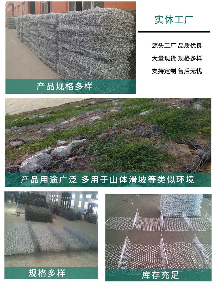 格宾石笼是一种金属网垫组装成的箱笼,装入块石填充料后,形成护岸,与过去采用混凝土或浆砌块石相比更加生态环保。