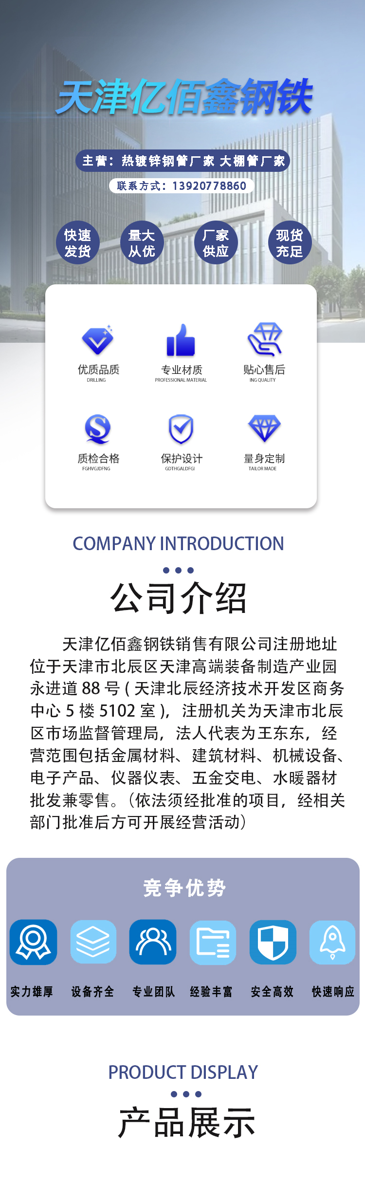 商铺名称:天津亿佰鑫钢铁销售有限公司