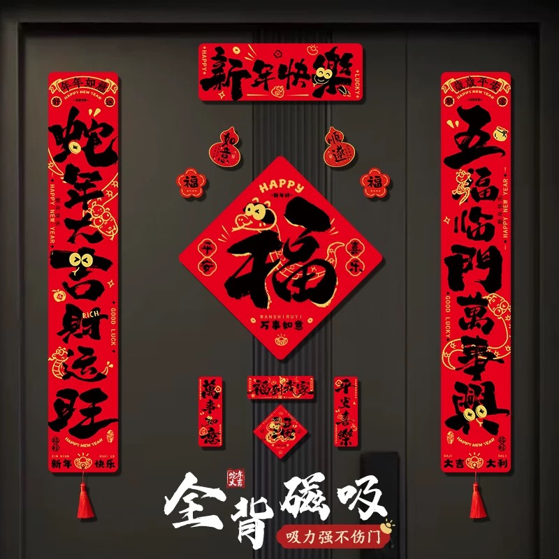 新款磁吸对联2025年蛇年春联福字门贴入户大门过年布置装饰挂件