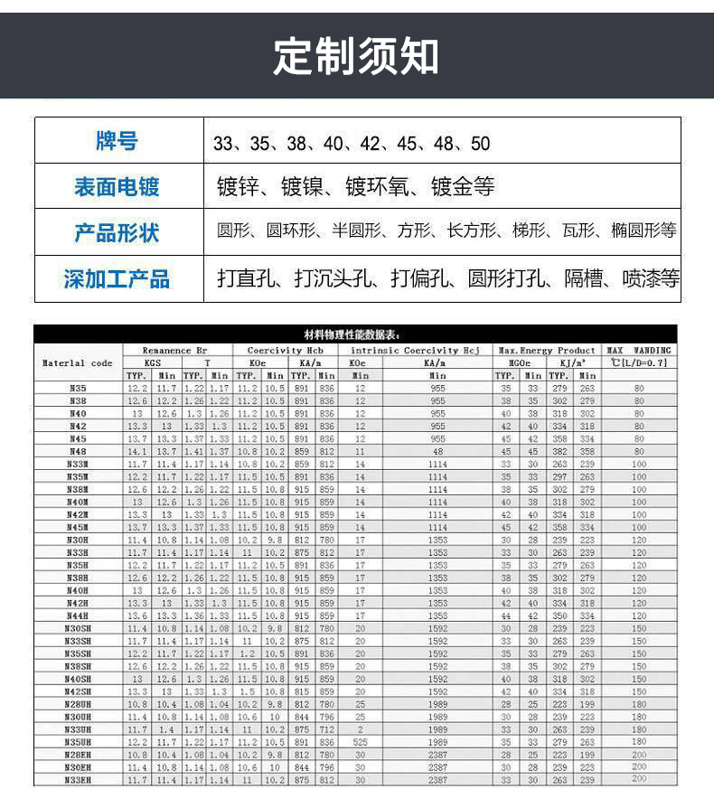 最大磁能积 | 302-326(KJ/m3) | ||