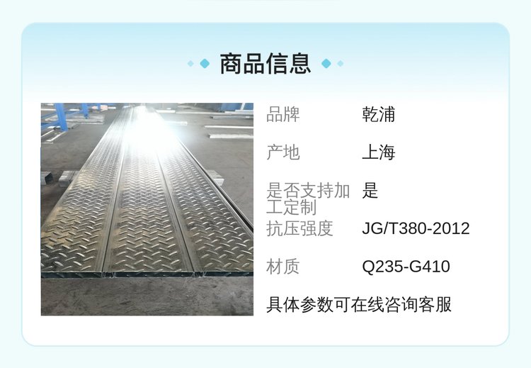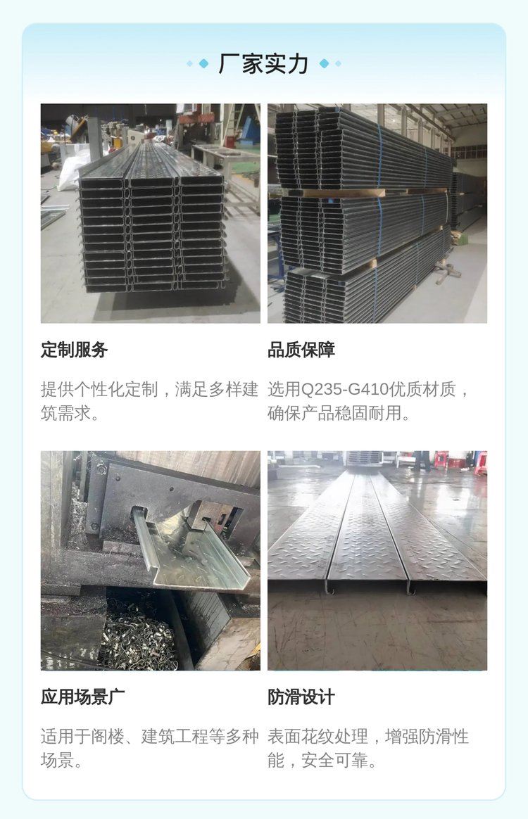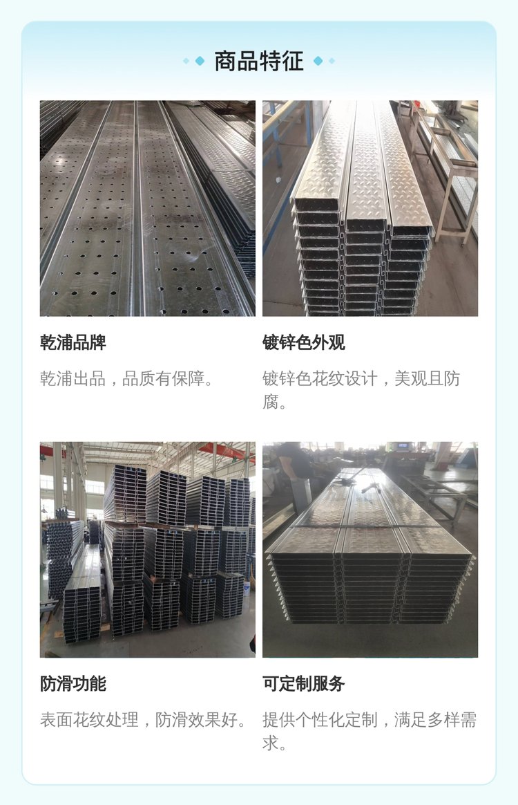 乾浦品牌镀锌色花纹防滑钢扣板建筑工程专用楼承板可定制