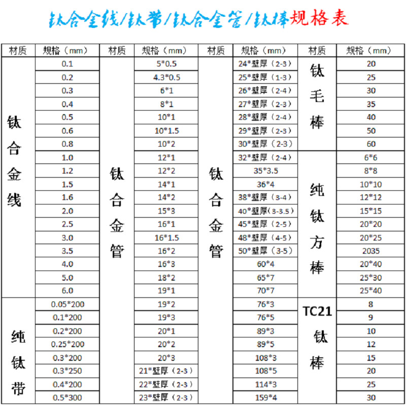种类 | 钛材类 | ||