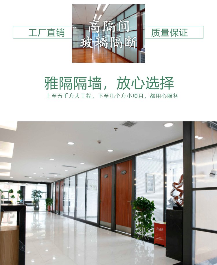 双玻璃带百叶隔墙-成品办公室玻璃隔断-雅隔建材