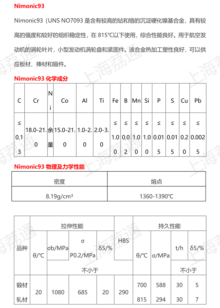 牌号Nimonic93
